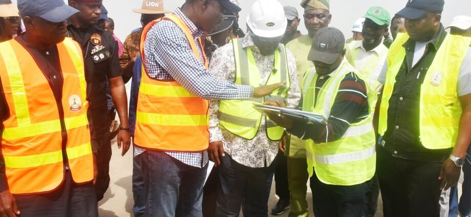 Pic.1. From left: Permanent Secretary, Federal Ministry of Works (FMW), Adeladan Rafiu-Olarinre; Coordinating Director, Bridges Design, FMW, Musa Saidu and Minister of Works, David Umahi, during the inspection of the ongoing Reconstruction of the Abuja-Keffi Expressway in Nasarawa. 0052/FRI/NOV/5/12/2025/Jimah Suleman/NANPic.2. From left: Permanent Secretary, Federal Ministry of Works (FMW), Adeladan Rafiu-Olarinre; Coordinating Director, Bridges Design, FMW, Musa Saidu; Minister of Works, David Umahi; Controller of Works, FCT, Yakubu Usman and others, during the inspection of the ongoing Reconstruction of the Abuja-Keffi Expressway in Nasarawa. 0053/FRI/NOV/5/12/2025/Jimah Suleman/NAN